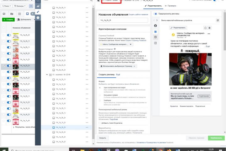 Сначала я сделал анализ конкурентов. В инфобизнесе я работаю давно, поэтому сильно больших открытий я не помню. Аватары для создания аудиторий Facebook уже были прописаны у ребят. Я создал 3 продающих текста и когда общался с таргетологами из команды, то пришла идея создать объявление на основе отзыва пожарного (благо отзывов от трейнинге у ребят очень много, смотрите сами https://vk.com/interrabz?z=album-169488809_255761624)
