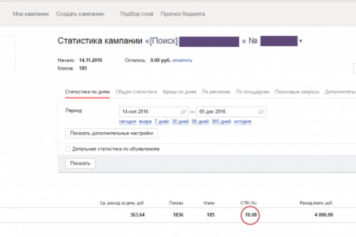 Удалось добиться хорошего CTR для кампании Яндекс Директ на Поиске. CTR чуть больше 10% Отличный результат для высококонкурентной ниши.
