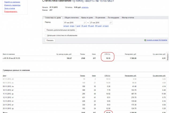 Отличный CTR более 10%. Недорогая цена клика для "Поиска".