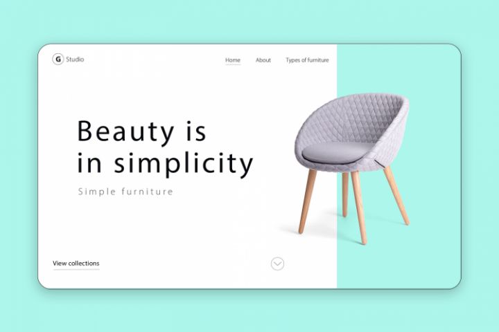 Минималистистичный дизайн первого экрана для магазина мебели.