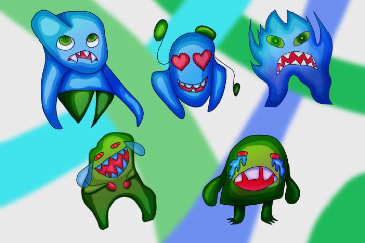 Заказчик попросил нарисовать небольшой сет стикеров в виде монстров с разными эмоциями. Я использовала ограниченную цветовую гамму. Заказчик остался доволен результатом моей работы.