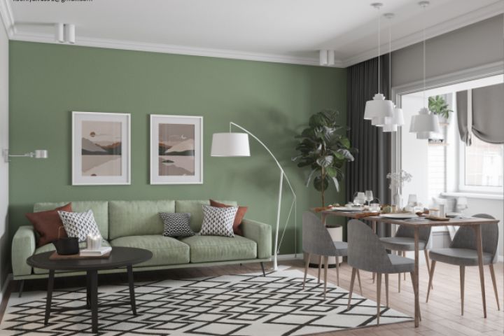 Скандинавский интерьер имеет достаточно монохромную палитру. Чтобы оживить гостиную, я решила добавить природных тонов: