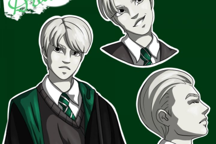 Набор из 4 стикеров на тему персонажа Драко Малфоя из Гарри Поттера.