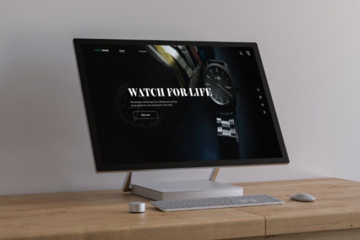 Дизайн первого экрана Landing Page магазина наручных часов.