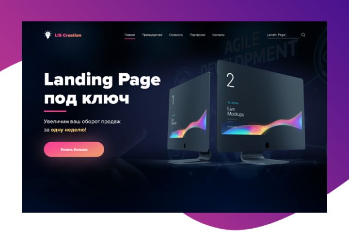 Требовалось сделать редизайн одной страницы для Веб-студии, которая разрабатывает сайты. Эта страница представляет собой одну из услуг, которую студия предлагает для своих клиентов. А именно - услуга создания "Landing Page под ключ".