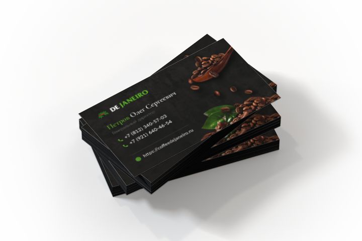 Визитка для компании по продаже кофейной продукции "De Janeiro" (сайт: https://coffeedejaneiro.ru/).