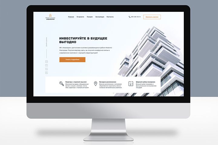 Landing page на 17 секций для ЖК Аквамарин.