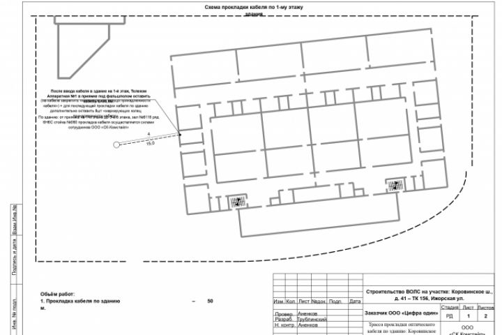 Данный проект отображает прокладку волоконно-оптического кабеля по зданию