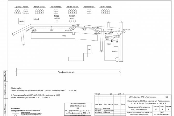 Схема по городской телефонной канализации. Так же есть возможность нарисовать проектируемую канализацию, проколы и множество других вариантов. Чертежи по зданию так же есть возможность отрисовать.