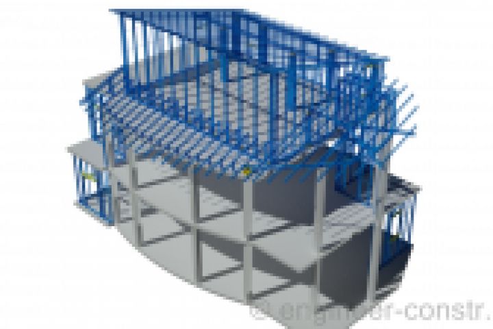 Общий вид каркаса индивидуального жилого дома. Полный железобетонный каркас на свайном основании в вечной мерзлоте. Выполнен расчет и проектирование раздела КР. Якутская область г. Якутск.