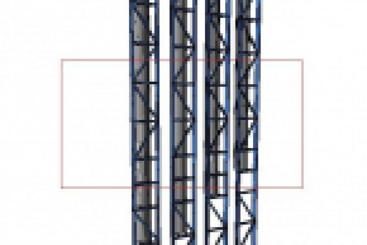Расчетная схема дымовой трубы для автоматической газовой котельной. Плоская ферма из швеллеров и гнутозамкнутых профилей. Из плоскости работы крепится к существующей стене здания. Произведен статический и динамический расчет. г. Санкт-Петербург.