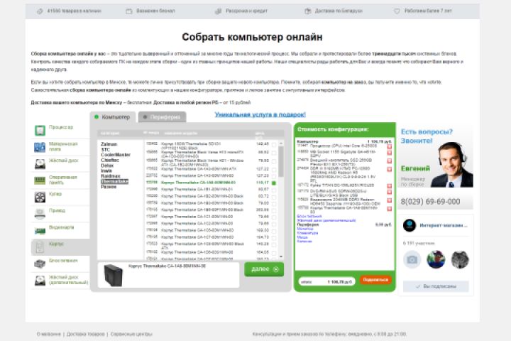 Разработка конфигуратора компьютеров для интернет-магазина. Backend - zend framework. Frontend - prototype js, ajax.