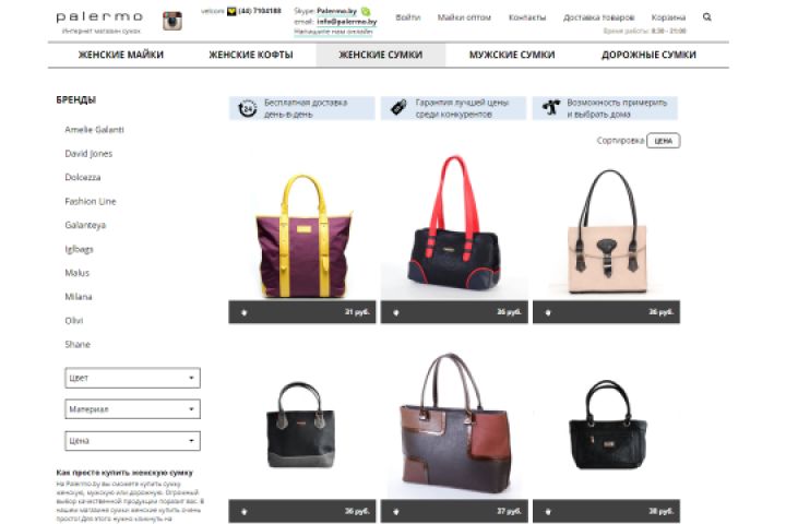 Разработка интернет-магазина по продаже сумок и аксессуаров. Backend - PHP symphony framework. Frontend - jquery, bootstrap.