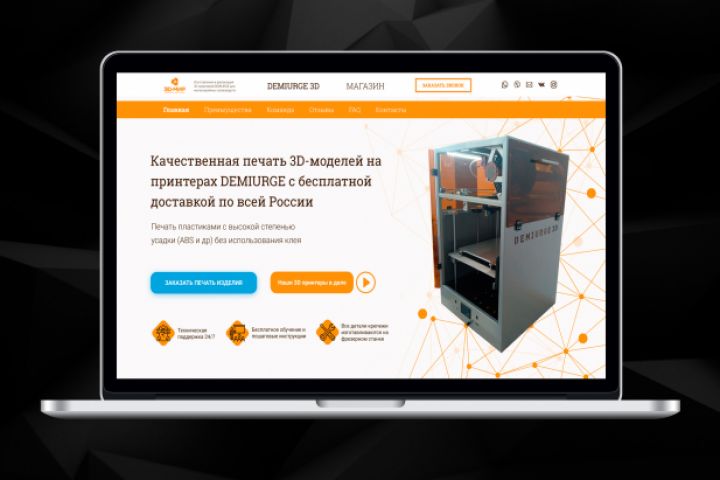 Разработка дизайна товарного лендинга для продажи 3д принтера собственного производства. Требования : лаконичный дизайн с корпоративными цветами.
