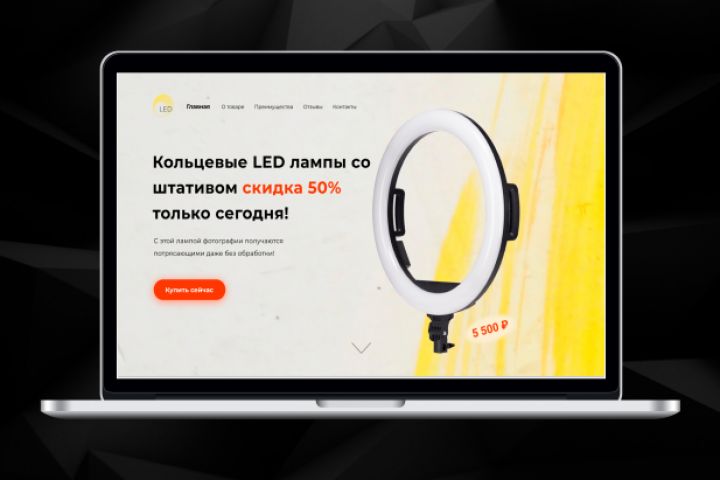 LP для продажи кольцевой Led лампы. В работе использовалась : Figma