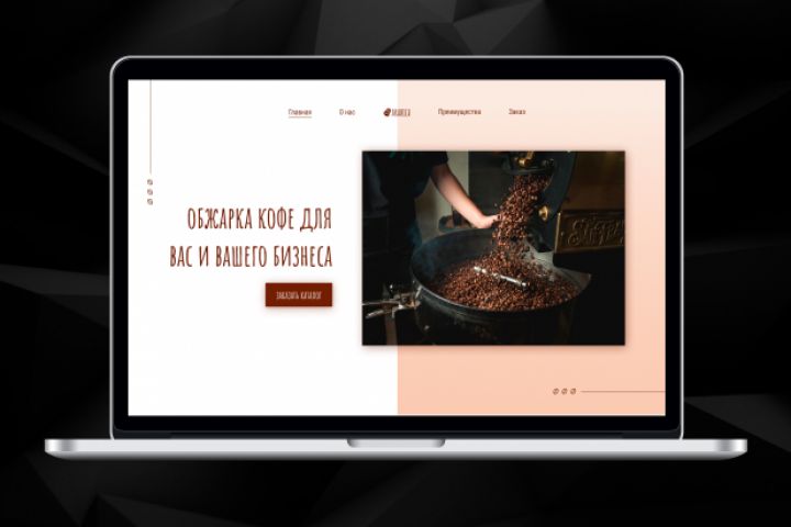 Задача : сделать минималистичный дизайн для физической услуги обжарки кофе. В работе использовались: - Figma