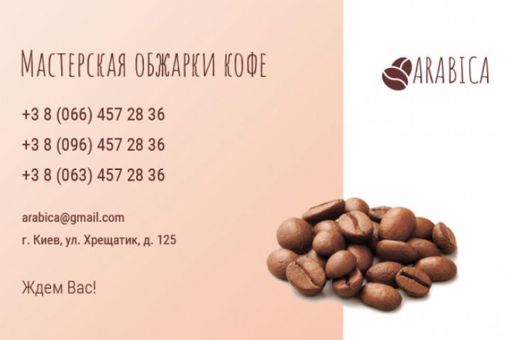 Задача : сделать двухстороннюю визитку для мастерской обжарки кофе. В работе использовались: - Photoshop