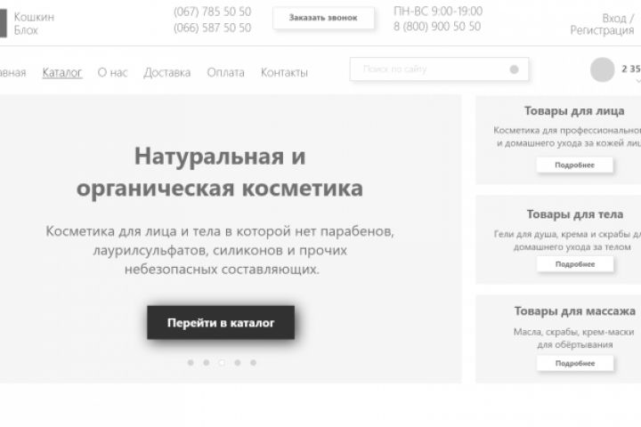 Задача: прототип интерне магазина натуральной косметики В работе использовались: - XD