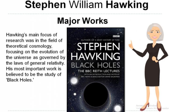 Presentation on the topic of an English theoretical physicist, cosmologist and astrophysicist, writer, director of Scientific Work at the Center for Theoretical Cosmology of the University of Cambridge. He is the author of a number of scientific papers, including joint work with Roger Penrose on the theorems about the gravitational singularity in the framework of general relativity and the theoretical prediction of the emission of radiation by black holes, often referred to as Hawking radiation.