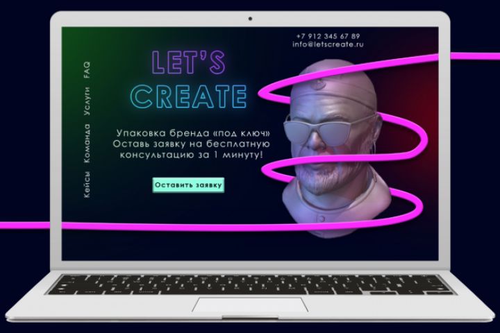 В этом дизайне демонстрируются креативные возможности студии, используются яркие цвета и акценты для привлечения внимания и сбора лидов