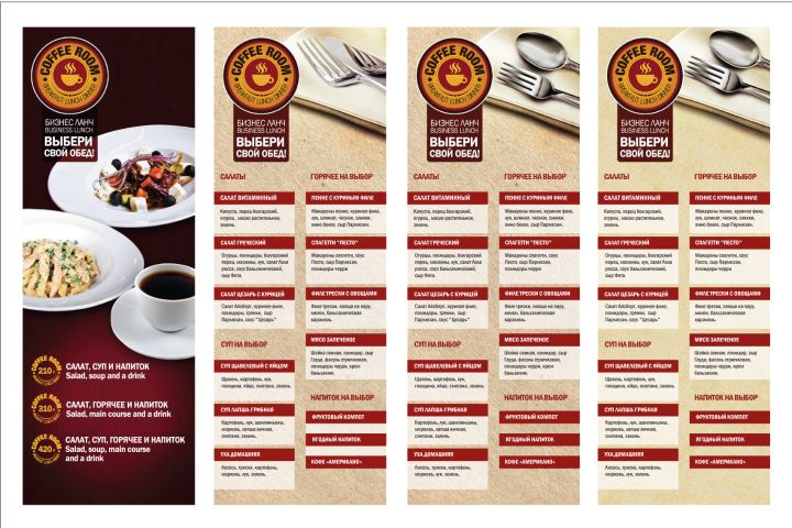Меню для бизнес-ланчей Coffee room.