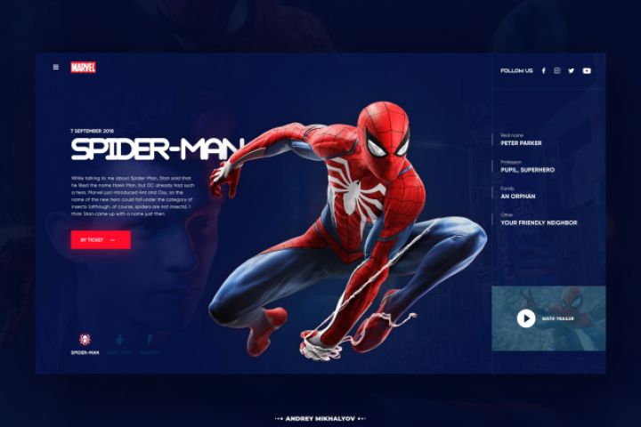 Первый экран страницы по продаже билетов на фильм "Человек-Паук"