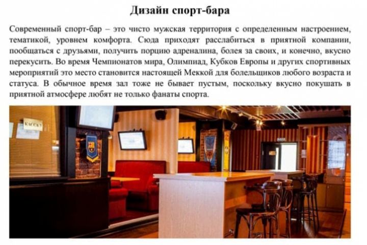 Компания Restconcept оказывает широкий спектр услуг начинающим и уже активно ведущим деятельность предприятиям сферы ресторанного бизнеса. Задача состояла в написании уникальных текстов в блог на тему дизайна ресторанов и кафе, а также требовалось подобрать подходящие фото и разместить готовый контент на сайте Битрикс согласно строгим требованиям – обязательные цитаты, четко структурированный текст.