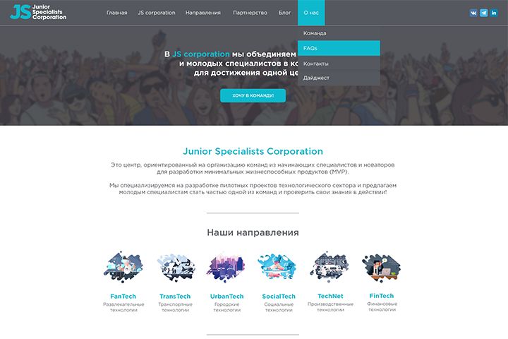 Работа в команде над проектом JS Corporation. от меня требовался frontend