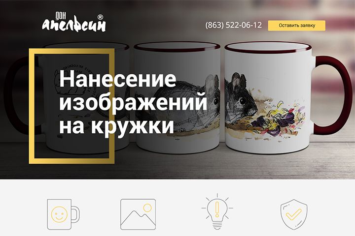 Вёрстка отдельной страницы("Нанесение изображений на кружки") для сайта don-apelsin на CMS 1C Bitrix. Вставка, доработка модулей.