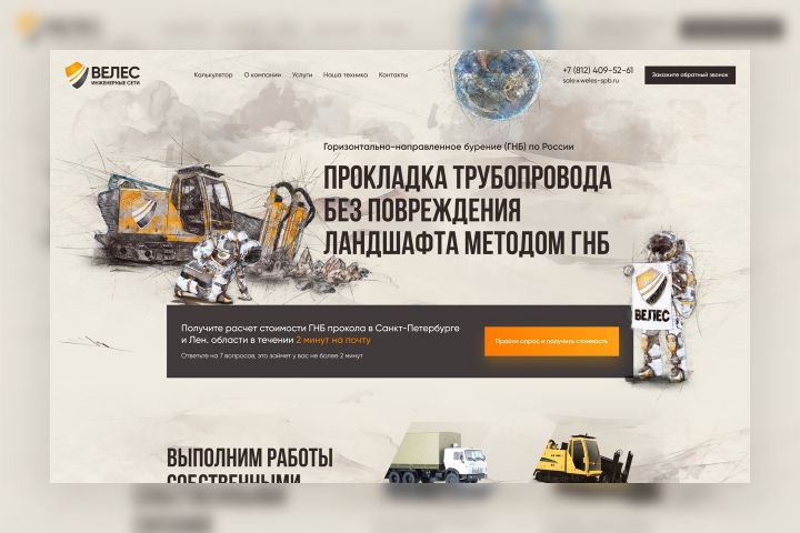 Верстка корпортативного сайта для компании, которая занимается прокладкой наружных инженерных сетей.