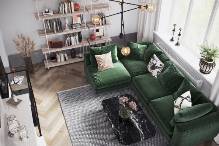 Интерьер гостиной загородного дома в скандинавском стиле