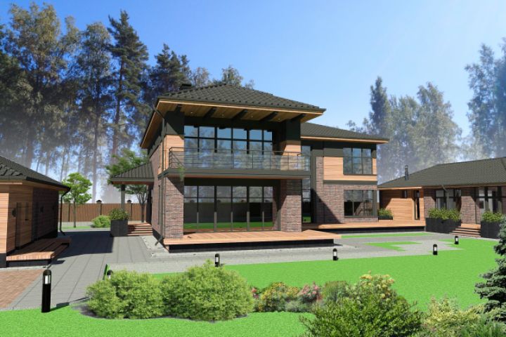 Проект комплекса частных жилых зданий (Дом, гараж, баня) на участке. Санкт Петербург, г. Зеленогорск. 2020-2021г