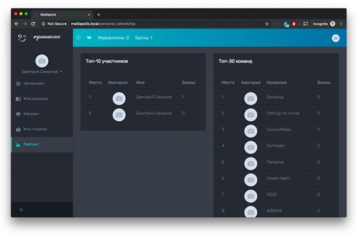 - Командный и личный рейтинг пользователей