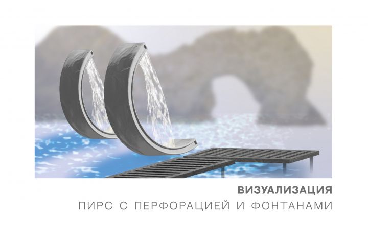 3D модель пирса с фонтанами