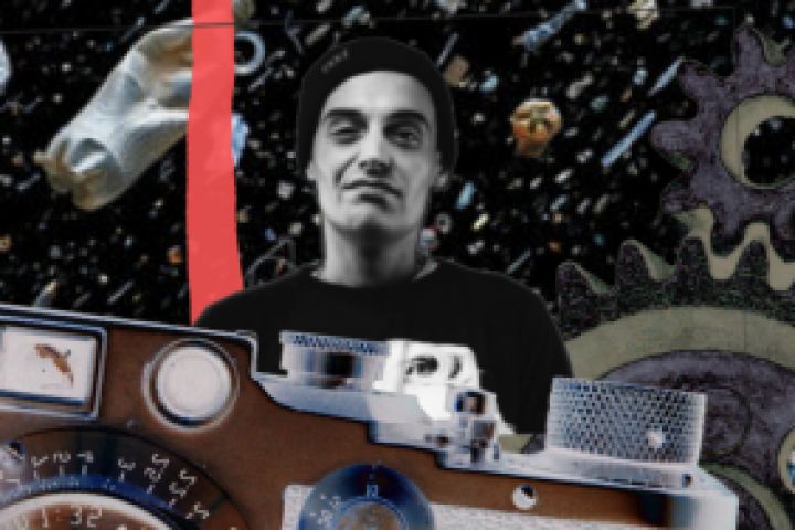Всеми и не всеми любимый реп-исполнитель, земляк Алёша Долматов, на фоне красного дерева и взрыва, скрывается за фото-объективом