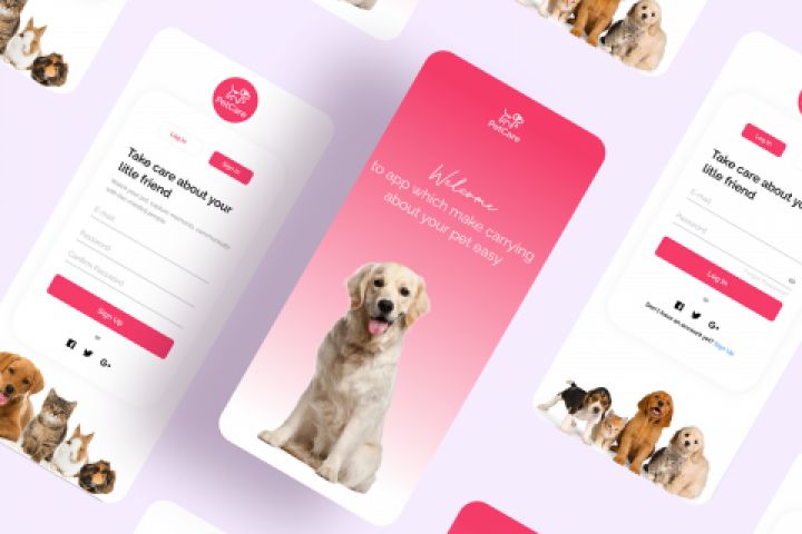 Создан приветственный экран, а также страницы логина и регистрации для мобильного приложения по уходу за домашними животными.