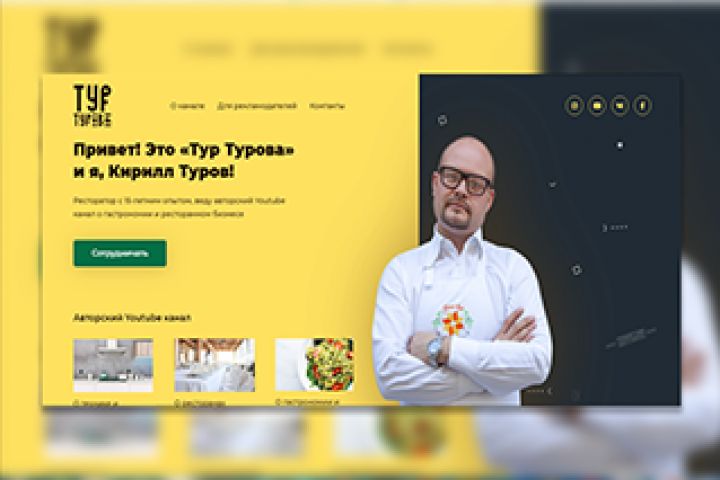 Дизайн сайта выполнен для канала на YouTube в ресторанном стиле. Дизайнер https://freelance.ru/tunuk Технологии разработки: HTML5, CSS3, JS, PHP. Верстка: резиновая, масштабируется под все разрешения экранов, кроссбраузерная.