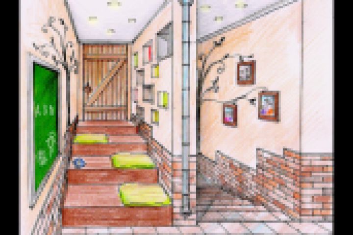 Оформление лестницы, ведущей на детский этаж таунхауса