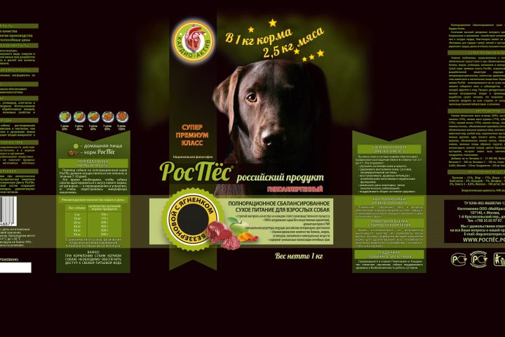Разработка дизайна упаковки для линии корма для собак "Роспес" . Заказчик компания “Авентин”