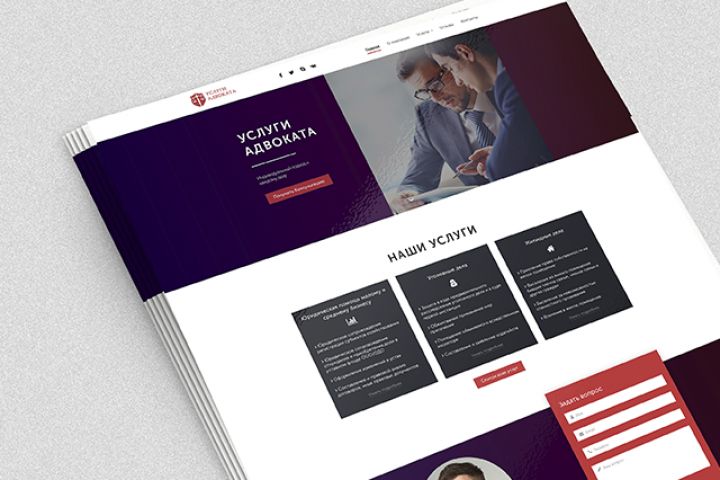 Простой и лаконичный дизайн для сайта юридической компании, которая предоставляет услуги по управлению бизнесом, гражданским, жилищным и уголовным делам.. Компания "Услуги Адвоката".