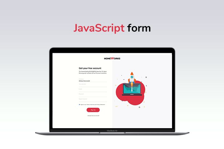 — форма регистрации "Sign up" с валидацией и отправкой данных;