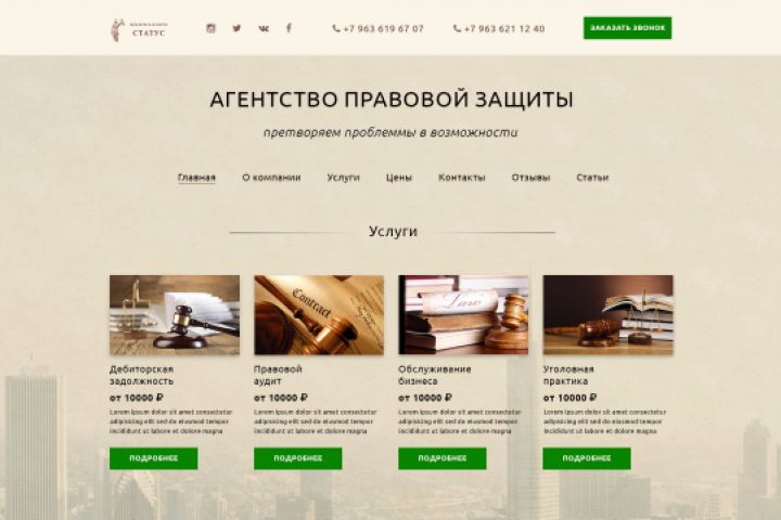 Разработка полноценного сайта для юридической компании, занимающейся правовой зашитой.