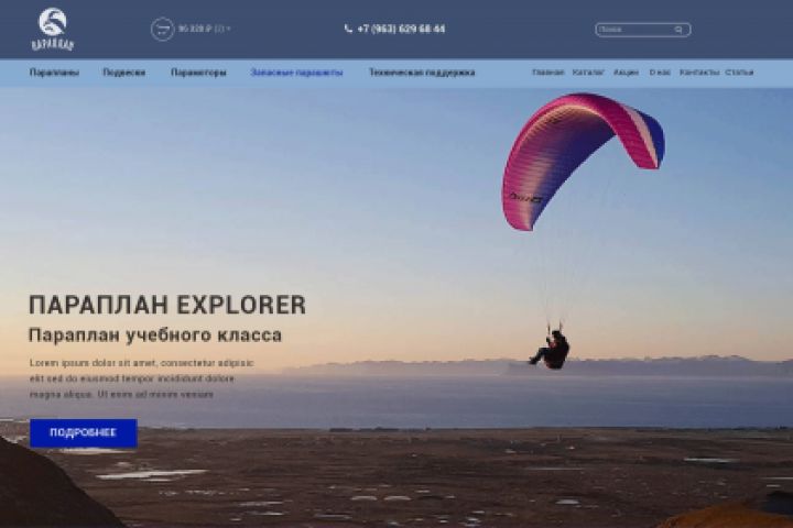 Разработка сайта для группы Крымских параглайдеров, профессионально занимающихся этим видом спорта и продажей оборудования.