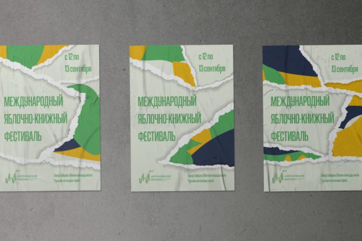 Выпускная работа серии плакатов для яблочно-книжного фестиваля "Антоновские яблоки в городе Коломне"