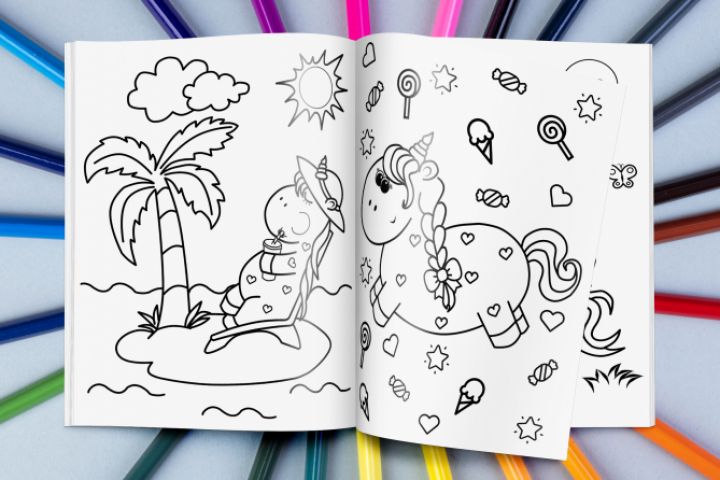 Детская раскраска в виде мини-историй о маленьком единорожке)