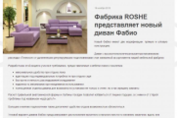 Информация для раздела "Новости" о выпуске новых моделей и модификаций мягкой мебели