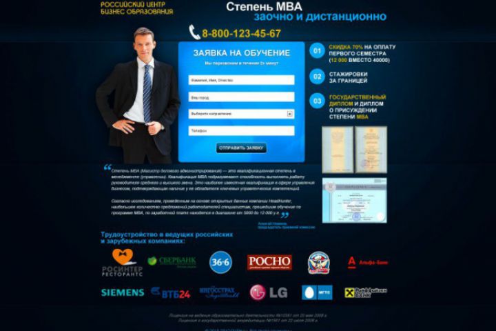 Лэндинг центра бизнес-образования под ключ: - Дизайн - Верстка - Программирование