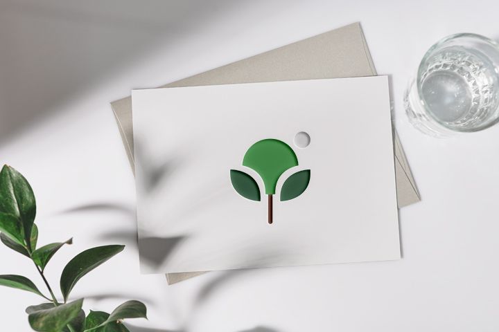 Логотип "Luna" для заповедника Изображена планета, луна, листья и всё это скомпоновано в дерево