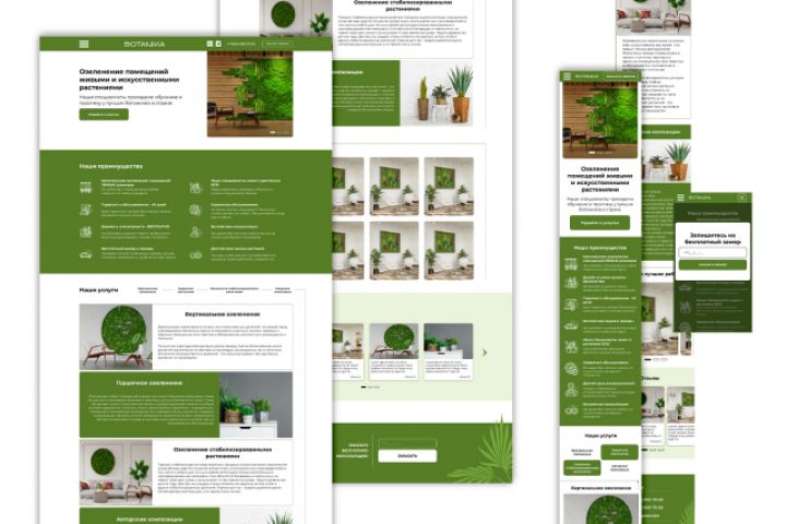 Дизайн лендинга для сайта озеленения помещений стабилизированными растениями.