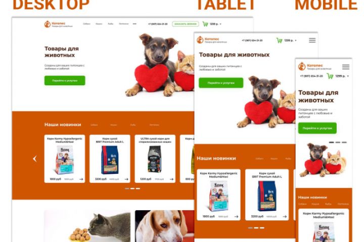 Адаптивный дизайн Интрернет-магазина товаров для животных